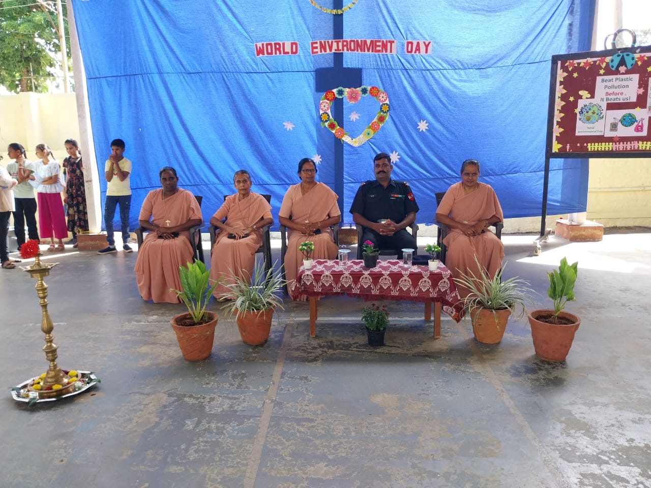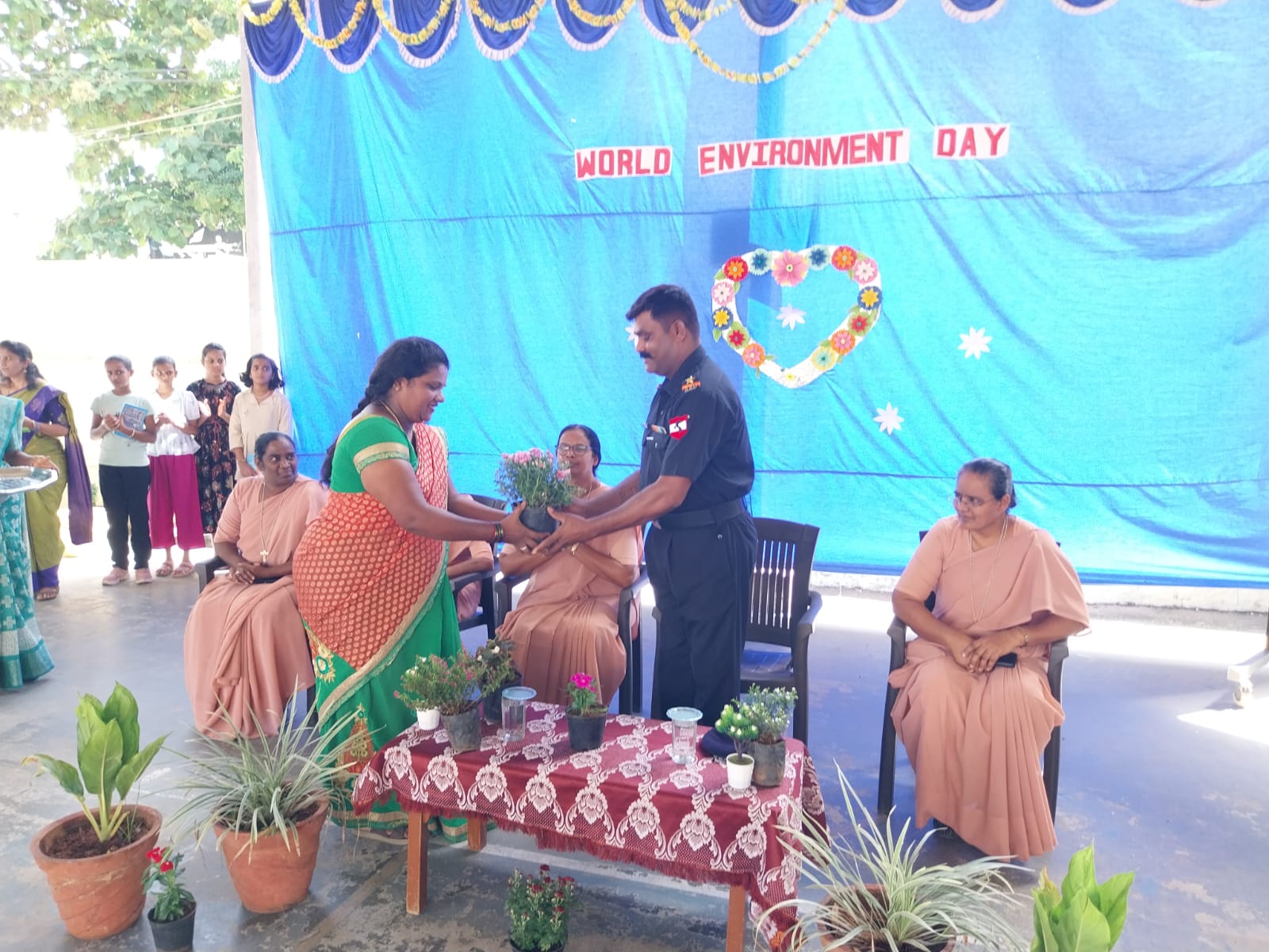 The main aim of celebrating Environment Day is to teach students the value of nature and the importance of keeping our surroundings clean and green. On this day, students take part in various eco-friendly activities like planting trees, cleaning the campus, poster-making, and slogan-writing on environmental themes.