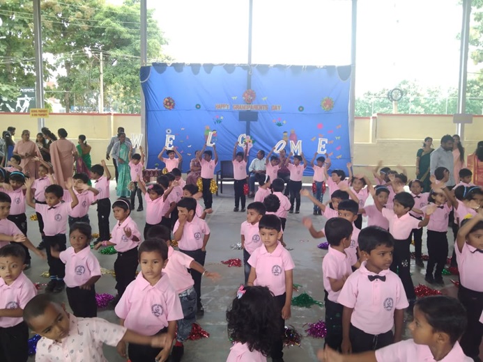 St. Mary’s School celebrated Grandparents’ Day on 26th July 2025 with great enthusiasm and heartfelt participation. The event saw a large turnout of grandparents, warmly welcomed by pre-primary children with handmade floral tokens.